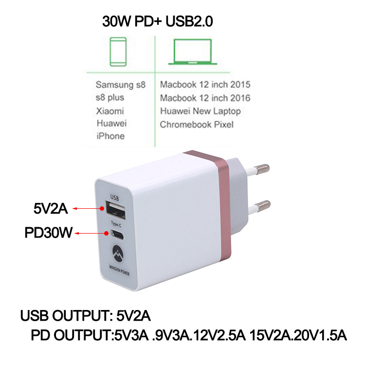 隨著USB-PD標準演變,將掀起新一波USB應用革命。USB在資料傳輸方面早已成為業(yè)界普遍採用的標準協定,而隨著更高傳輸速率的USB 3.0規(guī)格問世,更進一步增進其音訊/視訊傳輸應用的價值30WPD快充運用而生,它電源主要運用于平板電腦,手機,MACBOOK ,游戲機等,30W PD電源采用TYPE-C接口+USB2.0 雙口的連接方式,給用戶更方便的選擇。 PD30W充電器有5個電壓段:TYPE-C接口輸出:5V3A ,9V3A,12V2.5A,15V2A,20V1.5A