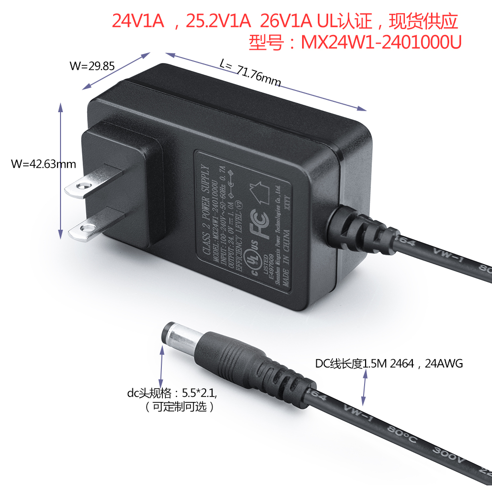26V1A筋膜槍充電器UL1310 PSE BSMI CE GS KC KCC SAA DOE6級能效, 明鑫電源針對筋膜槍市場,投入了全球認(rèn)證,全面升級產(chǎn)品外觀,性能,此款產(chǎn)品為高光鏡面,中間為一條高光絲帶狀結(jié)合線,每個角度都能解讀到它的與眾不同,最大做到27V1A,中,美,歐,日,臺灣,韓,日本各個市場都能滿足。